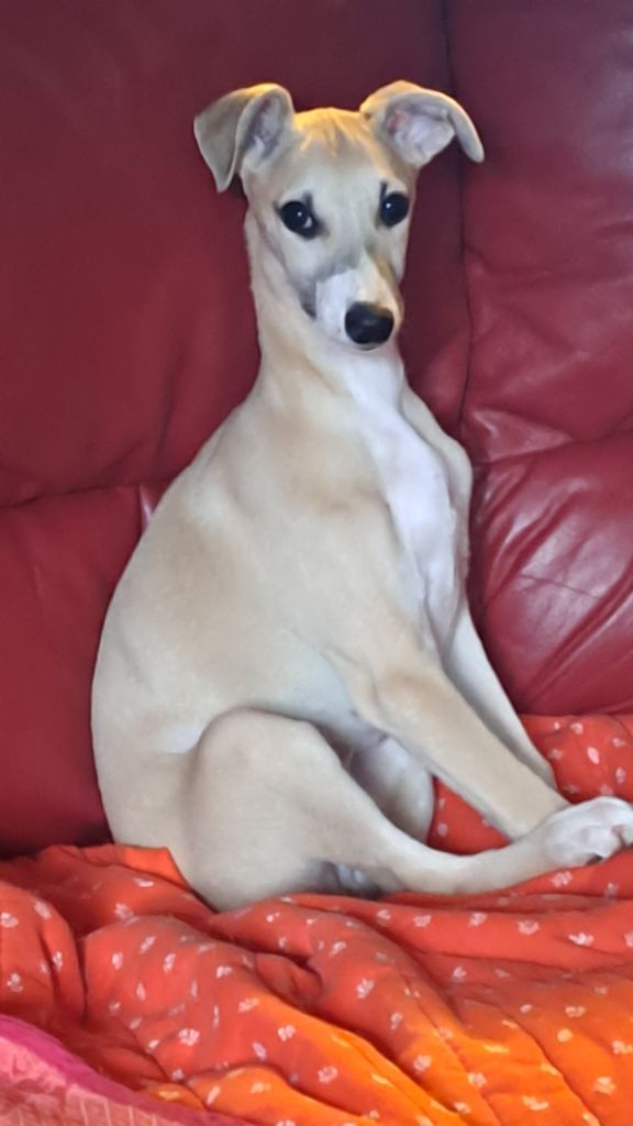 Melle whippet fait la sieste avec ses nouveaux copains et copines chaque aprés-midi au soleil sur le divan du salon.